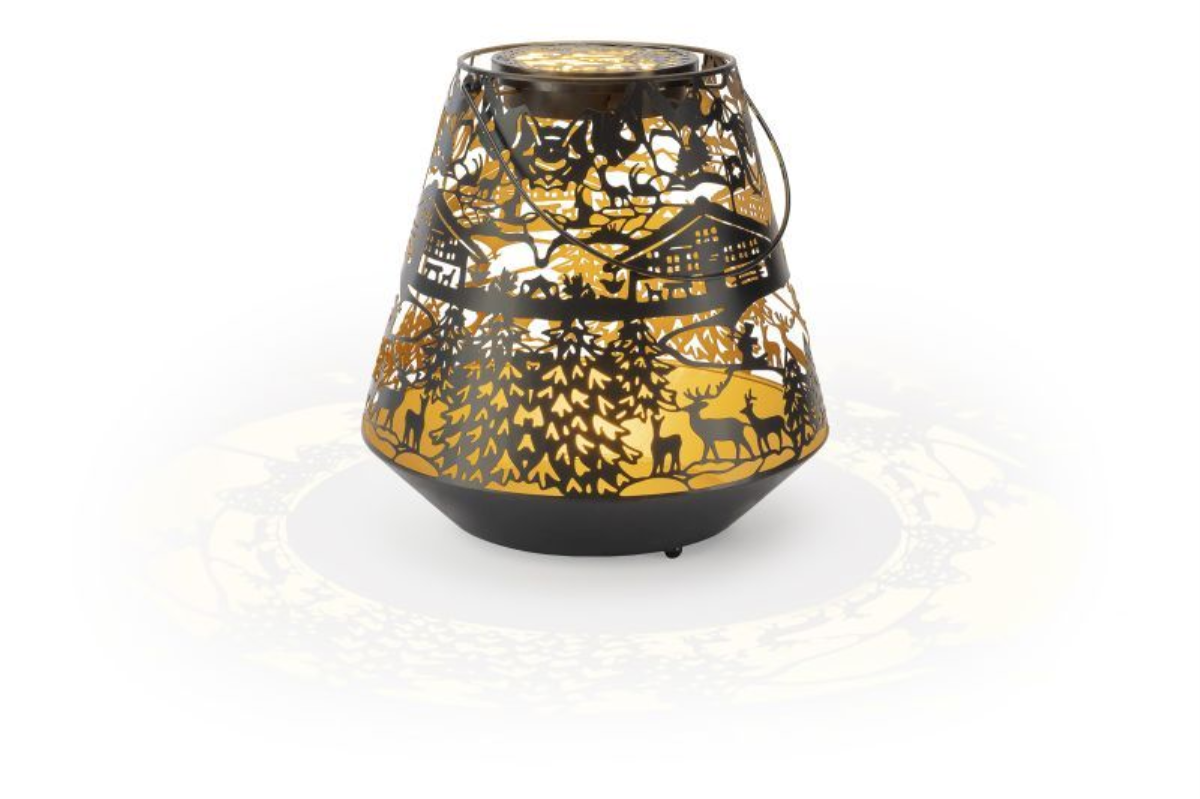 Akkubetriebene Metall-Laterne Alps 29 | schwarz-gold | HxD: 29x29cm | warmweiß | IP44 | inkl. Timer: 6h on/18h off | Batterie: 2x4000mAh AKKU ICR 18650 inkl. | USB-C |