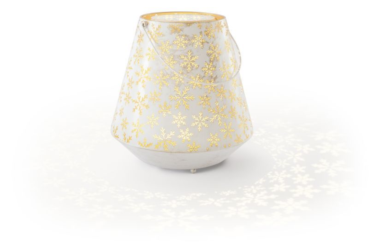 Akkubetriebene Metall-Laterne Flake 29 | weiß-gold | HxD: 29x29cm | warmweiß | IP44 | inkl. Timer: 6h on/18h off | Batterie: 2x4000mAh AKKU ICR 18650 inkl. | USB-C |