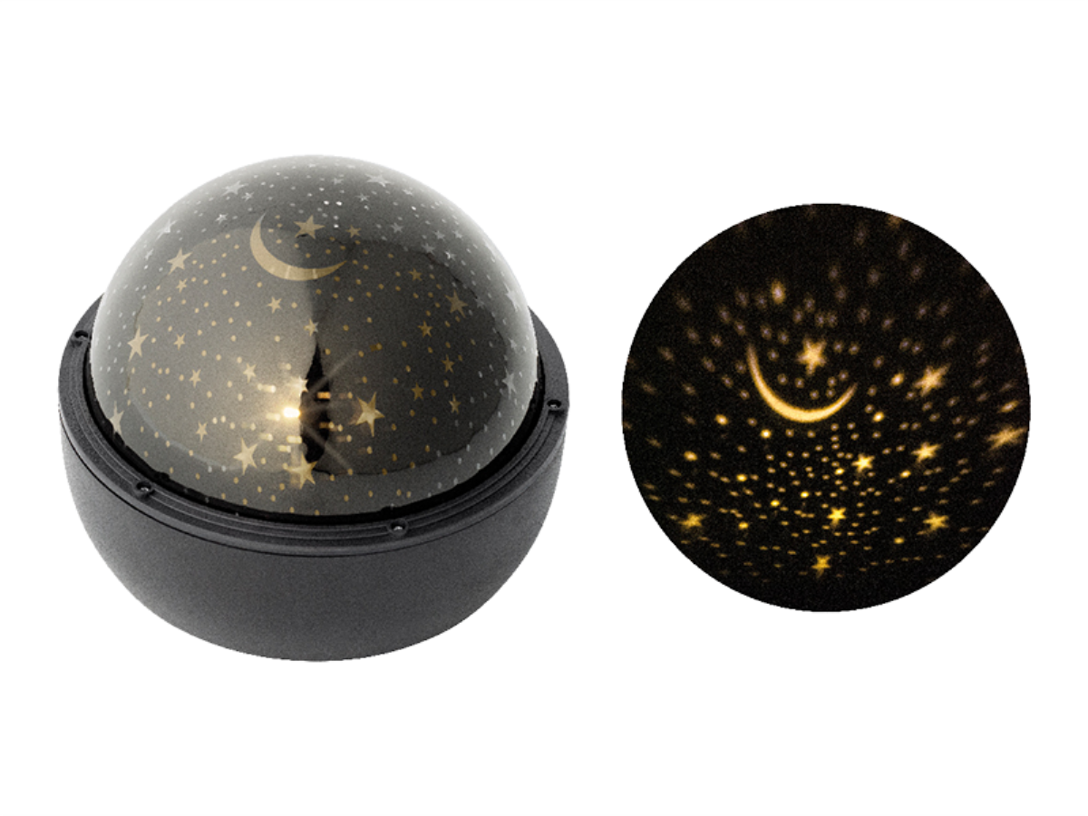 Batterie 3D-Projektor "Nachthimmel" mit Rotations-Effekt | Schwarz | H: 13cm | d: 16cm | warmweiß | Batterie: 3xAA exkl. | IP20 | Timerfunktion: 6h an, 18h aus |