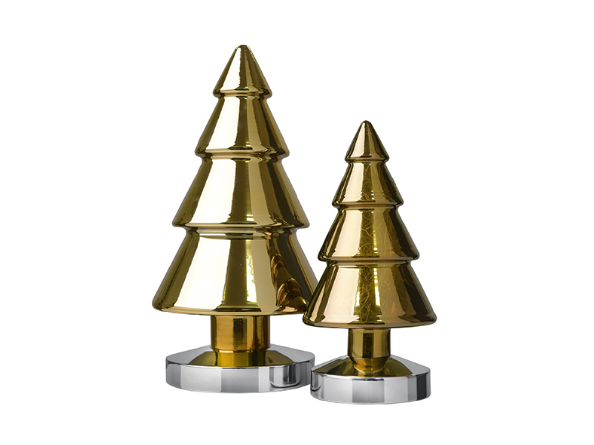Batterie LED Dekoleuchte Winterlight Tannenbaum chrom-gold groß | H: 34cm | Batterie: 3xAA exkl. | 4,5V |