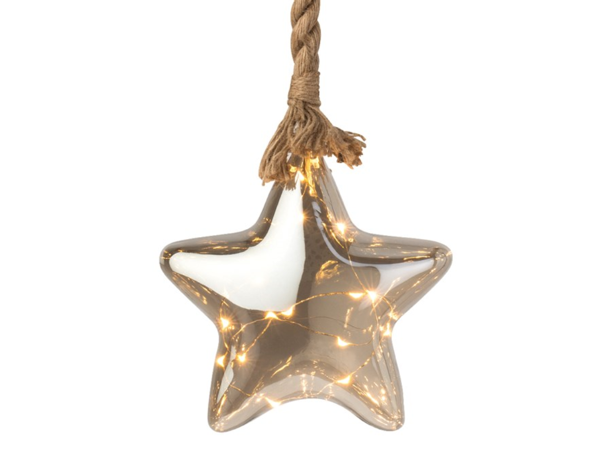 Batterie Weihnachtsstern Glas auf Seil | d: 20cm | 15 LEDs | warmweiß | Batterie: 3xAA exkl. | Timer: 6h an, 18h aus | IP20 |