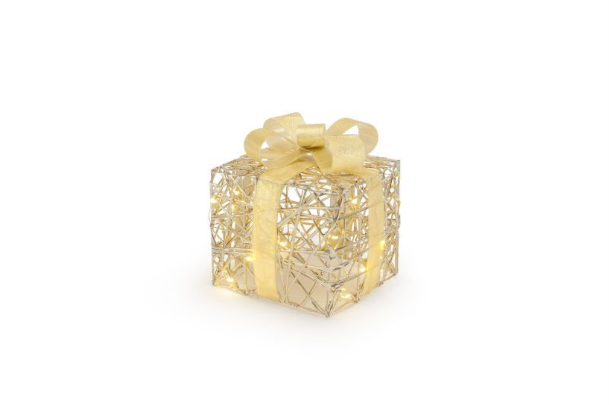 Batteriebetriebenes Geschenkspaket | gold | HxB: 20x20cm | warmweiß | IP44 | inkl. Timer: 6h on/18h off | Batterie: 3xAA exkl. |