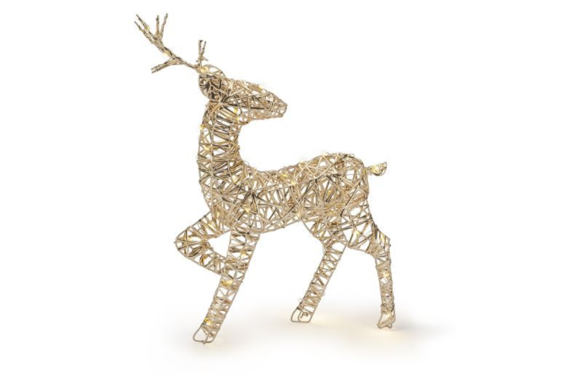 Batteriebetriebenes Rentier | gold | HxBxT: 47x32x10cm | warmweiß | IP44 | inkl. Timer: 6h on/18h off | Batterie: 3xAA exkl. |