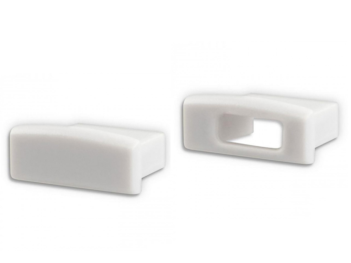 Endkappensatz für Aluprofil flach randlos; PVC grau; bestehend aus 2 Stück (1 mit Loch / 1 ohne Loch)