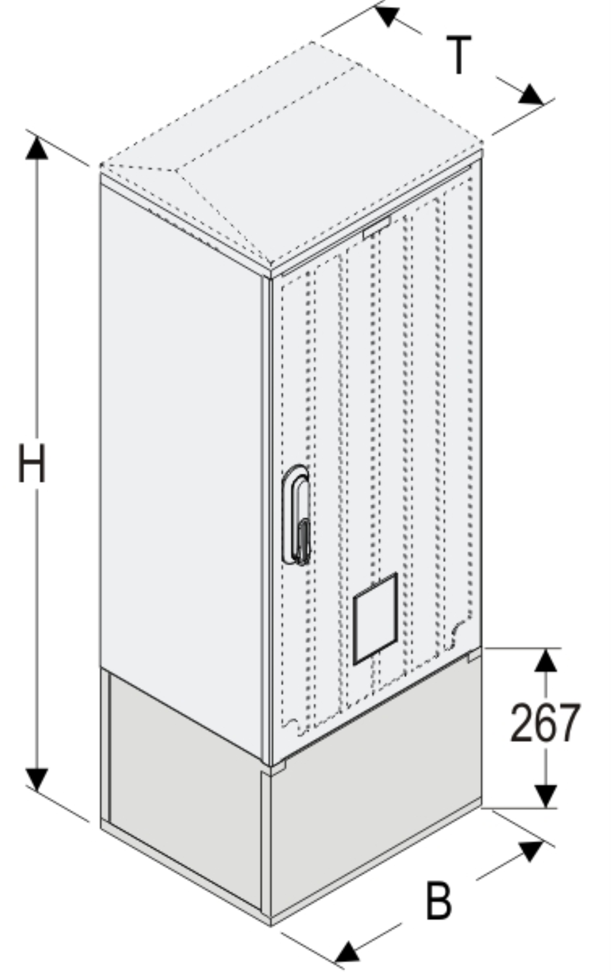 KSi+KK 40 x 80 Kasten GFK + Kurzsockel + Isolierstützer, glatt, Schrägdach, 1-türig, 1 Sperre, BxHxT=396x1108x320
