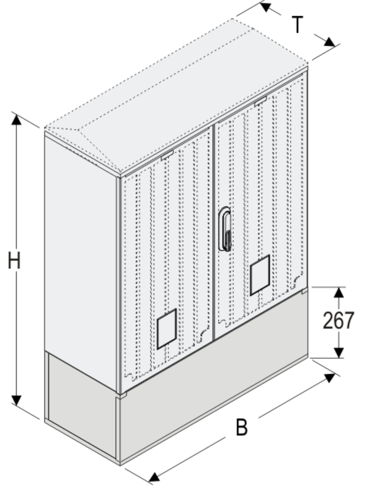 KSi+KK 80 x 80 Kasten GFK + Kurzsockel + Isolierstützer, glatt, Flachdach, 2-türig, 1 Sperre, BxHxT=795x1064x320
