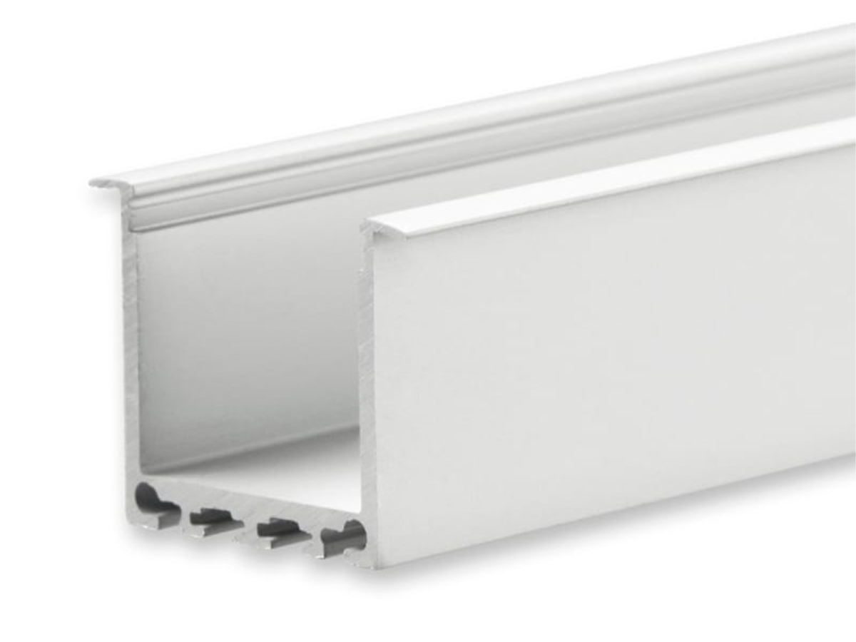 Klasse10 Einbau Aluprofil hoch für LED-Flex; Außenmaß inkl. Flügel BxH: 33,84x26,00mm; Einbaumaß BxH: 26,79x25,00mm; Innenmaß BxH: 23,50x25,00mm; (für LED Bänder mit max. 23mm Breite) in Stange zu 2m