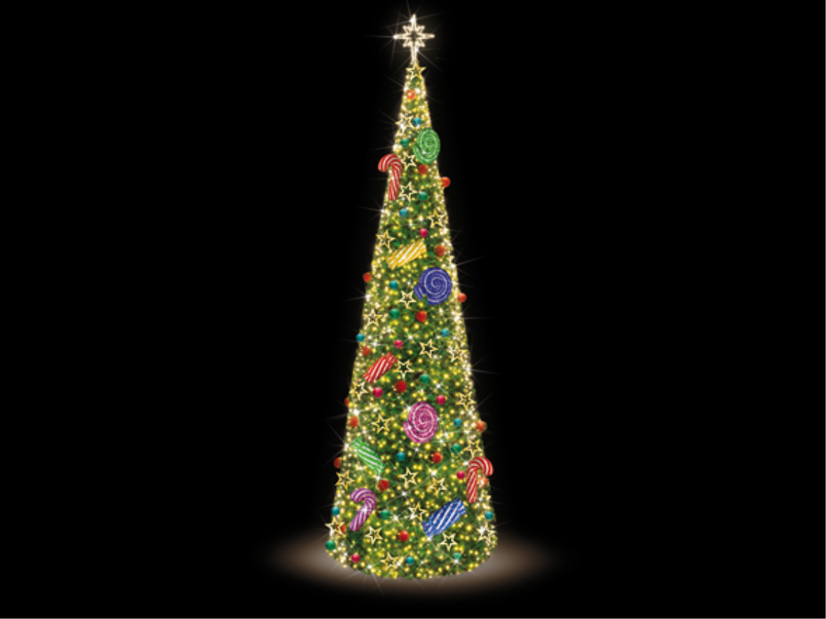 LED 3D-Figur Christbaum "Candy" Bunt | H: 725cm | d: 240cm | 24V | 127W | warmweiß | inkl. Netzteil | IP44 |