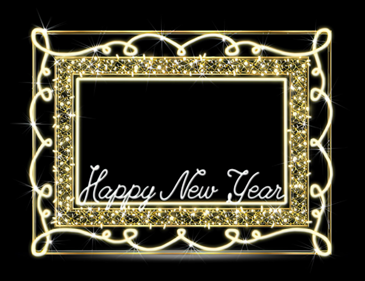LED 3D-Motiv Bilderrahmen "Happy New Year" Gold | HxBxT=225x300x90cm | 24V | 59W | 2700K warmweiß | inkl. Netzteil | IP44 |