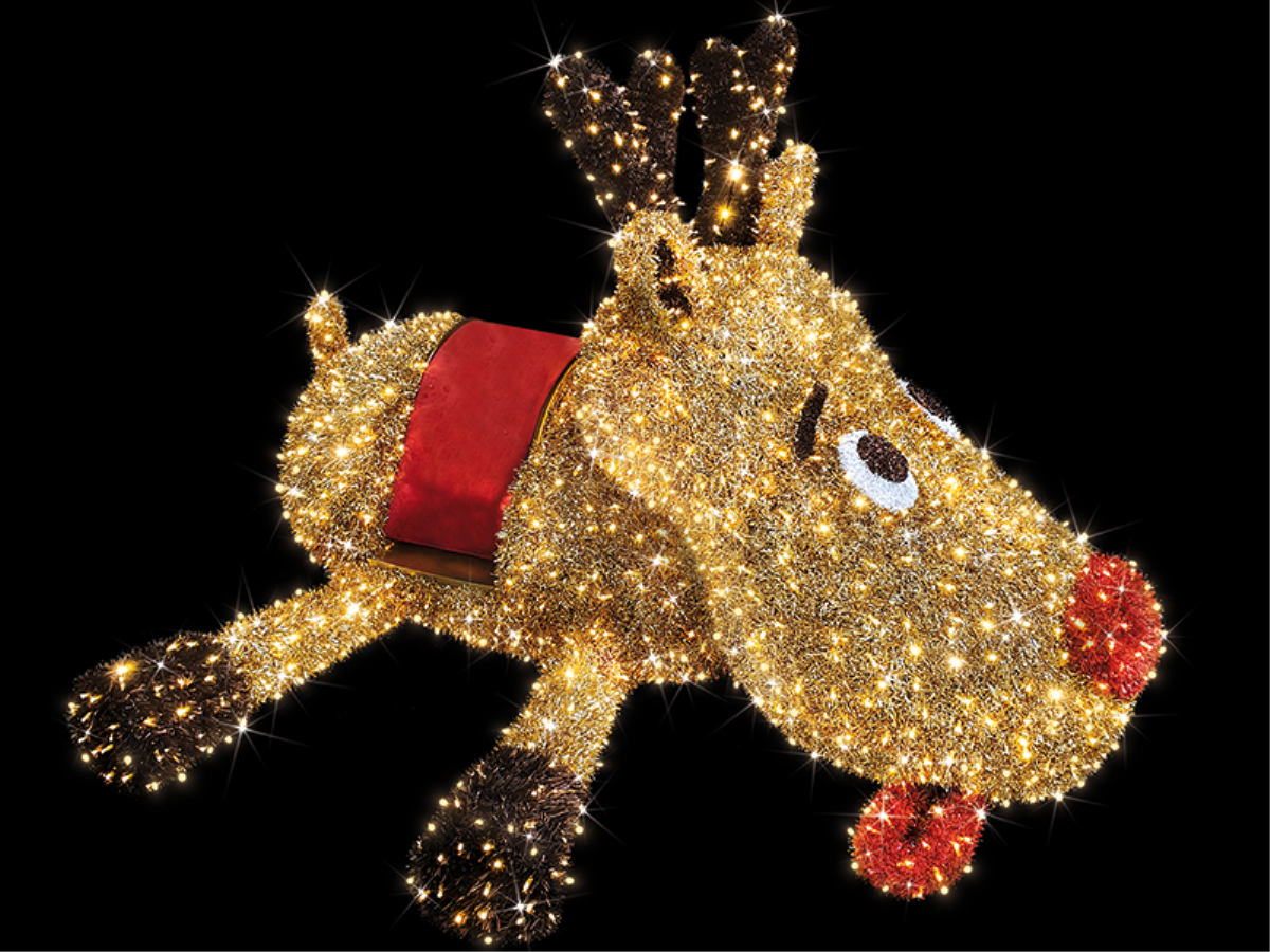 LED 3D-Motiv "Lustiges Rentier" Gold / Rot | HxBxT: 190x270x285 | 24V | 110W |warmweiß | inkl. Netzteil | IP44 |