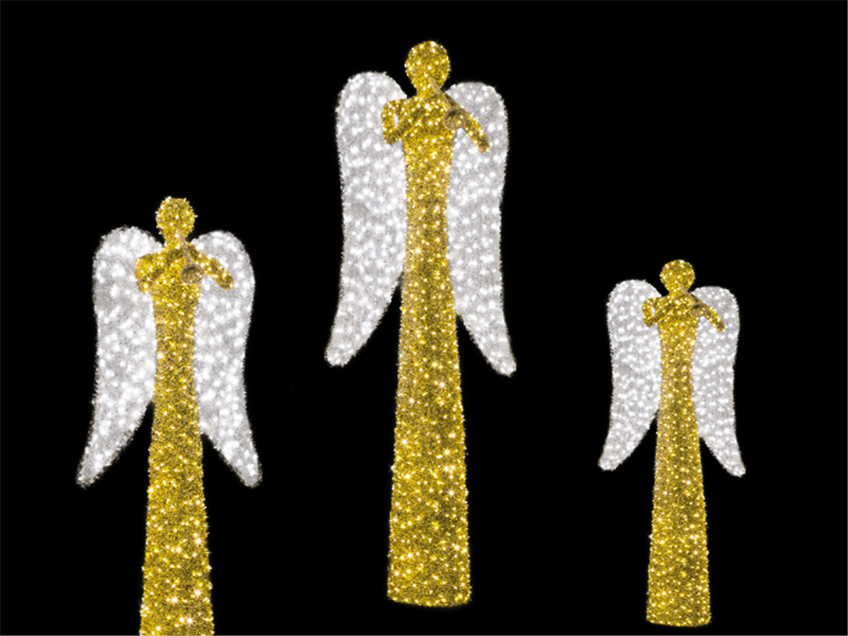 LED 3D-Standmotiv "Engel Exklusiv" Gold/Weiß | HxBxT: 515x200x115cm | 132W | warmweiß statisch | eisweiß flasher | IP44 |