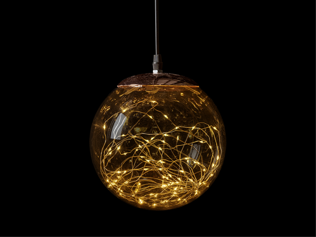 Leuchtkugel "Charmy Ball" Kupfer mit schwarzem Kabel | indoor | IP20 | d: 20cm | 4,5V | 1,35W | 80LEDs | warmweiß | 5m Anschlußkabel