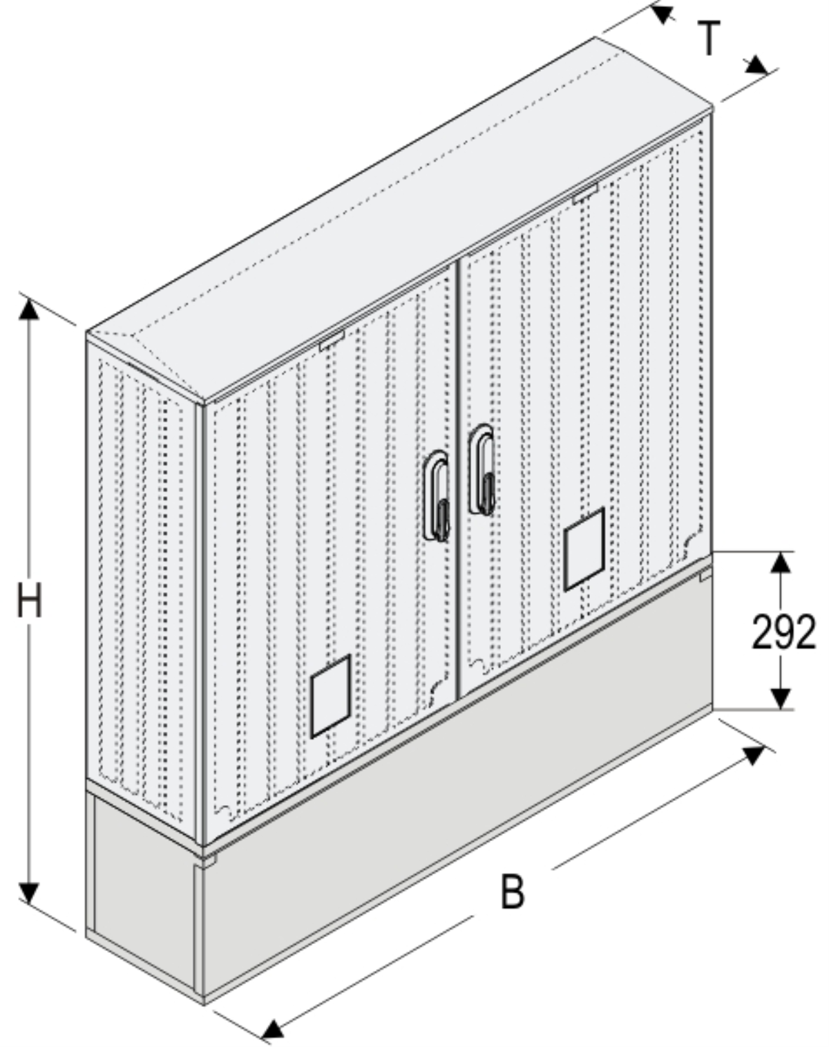 OSZ 53x2x60 + KP Kasten GFK mit Kurzsockel mit Trennwand, gerippt, Flachdach, 2-türig, 2 Sperren, BxHxT=1058x889x245
