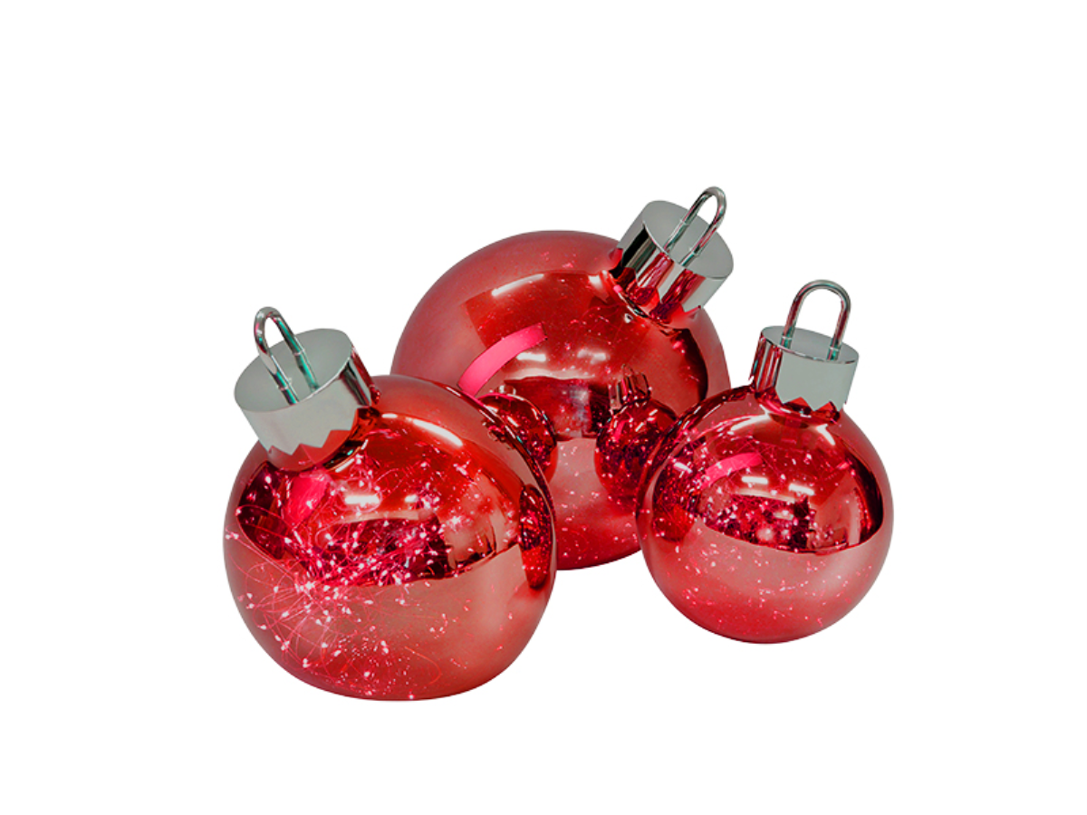 Batteriebetriebene Dekokugel chrom-rot klein, 3W, D: 20cm, 3xAA nicht im Lieferumfang enthalten