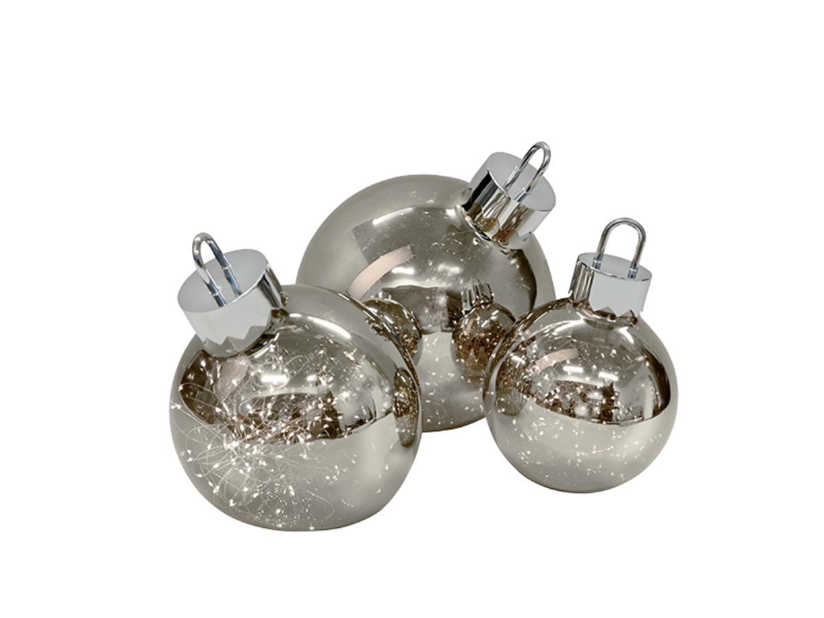 Batteriebetriebene Dekokugel chrom-smoke groß, 3W, D: 30cm, 3xAA nicht im Lieferumfang enthalten