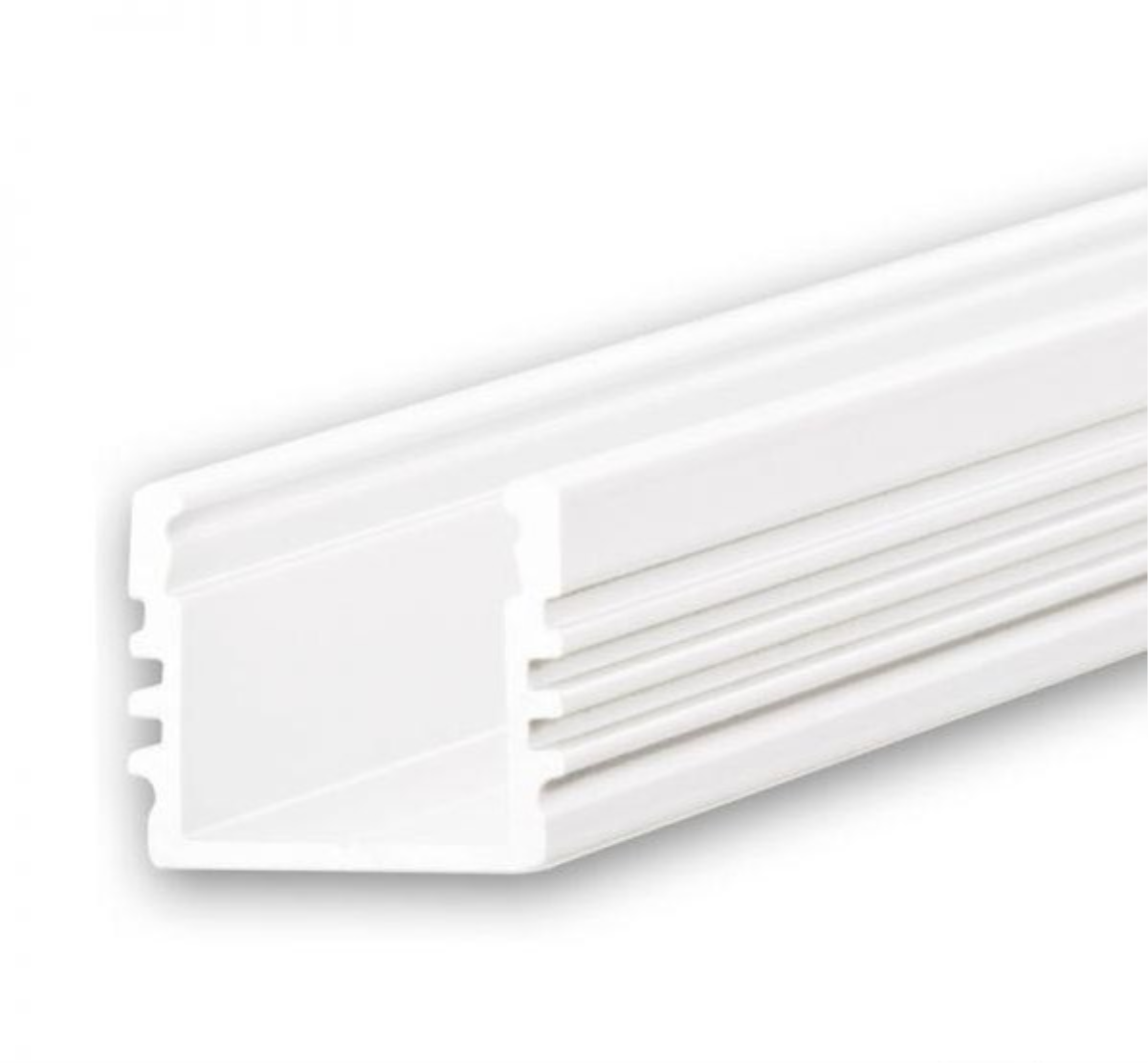 Klasse1 Aluprofil hoch weiß RAL9010 für LED-Flex; Außenmaß BxH: 16,8x13,01mm; Innenmaß BxH: 12,4x13mm; (für LED Bänder mit max. 12mm Breite) in Stange zu 2m