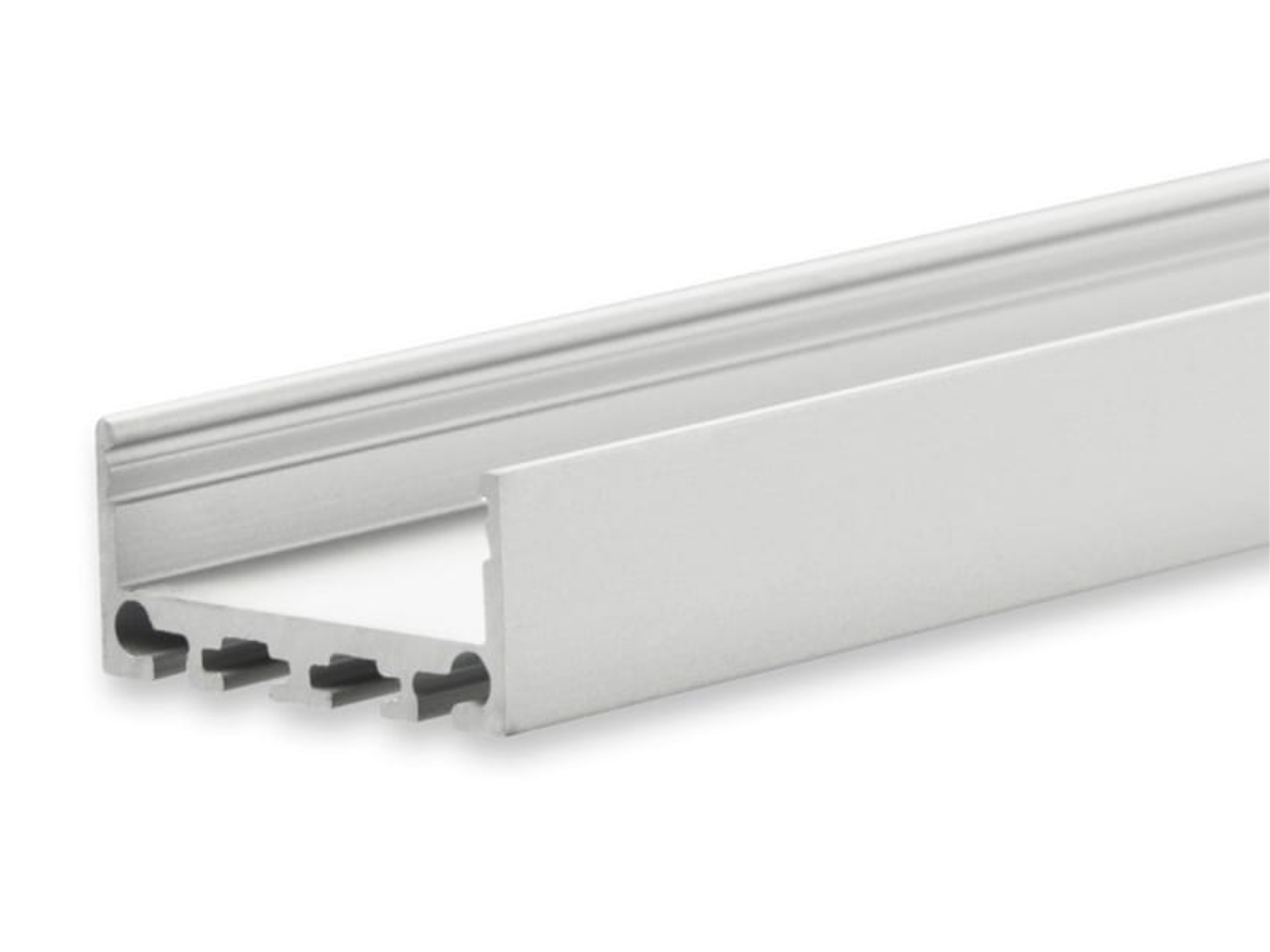 Klasse10 Aluprofil für LED-Flex; Außenmaß BxH: 26,79x11,69mm; Innenmaß BxH: 24,08x7,59mm; (für LED Bänder mit max. 24mm Breite) in Stange zu 2m