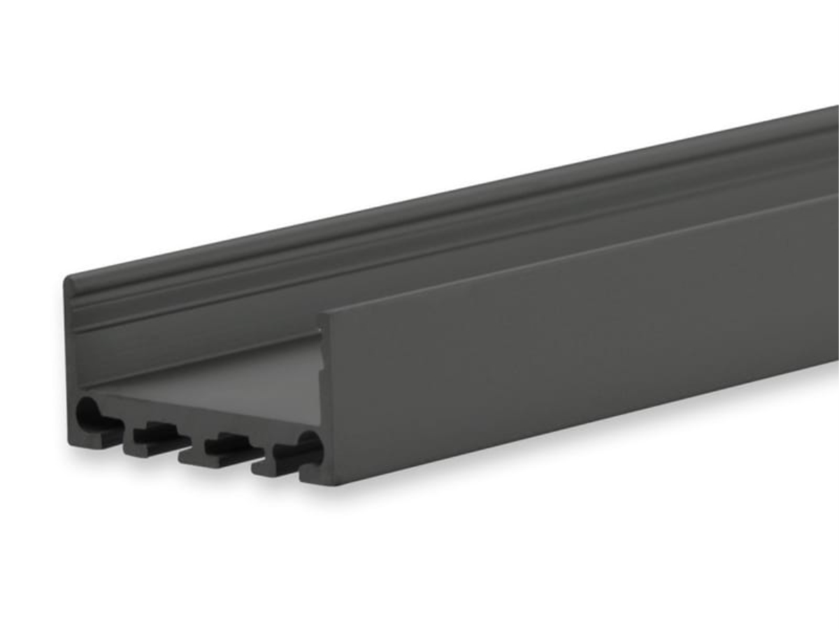 Klasse10 Aluprofil schwarz für LED-Flex; Außenmaß BxH: 26,79x11,69mm; Innenmaß BxH: 24,08x7,59mm; (für LED Bänder mit max. 24mm Breite) in Stange zu 2m