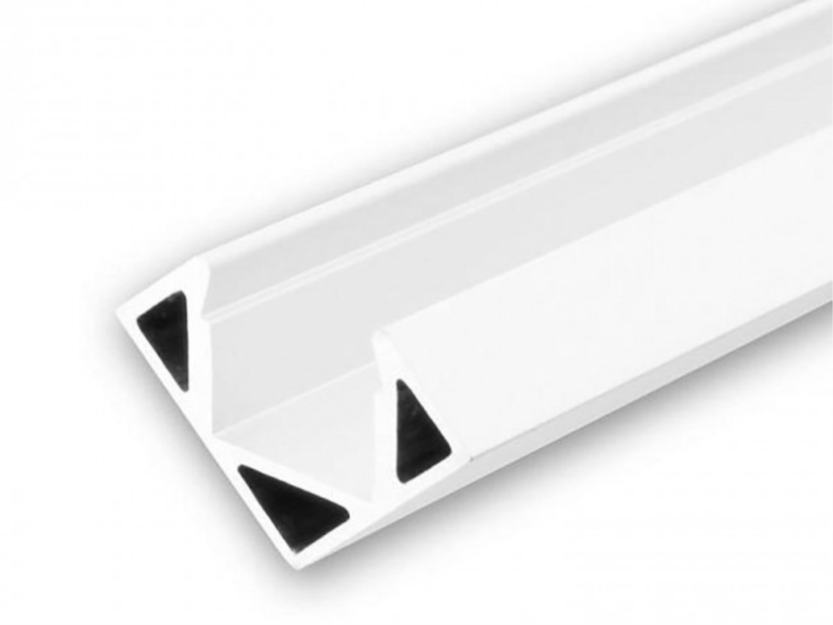 Klasse8 Aluprofil Eckprofil 45° weiß RAL9010 für LED-Flex; Außenmaß BxH: 17,48x17,48mm; Innenmaß BxH: 11,5x5,11mm; (für LED Bänder mit max. 11mm Breite) in Stange zu 2m