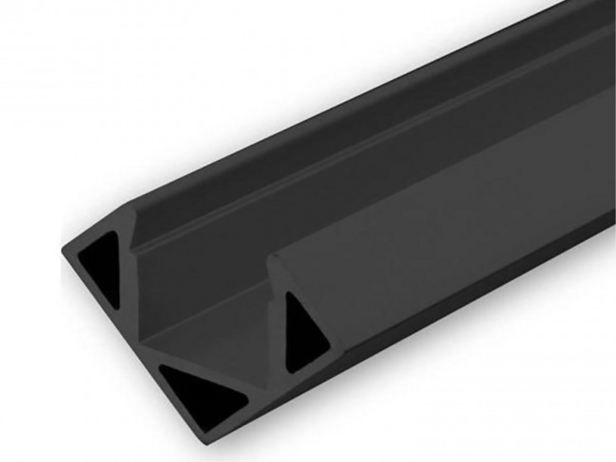 Klasse11 Aluprofil Eckprofil 45° schwarz RAL9005 für LED-Flex | Außenmaß BxH: 25,45x11,25mm | (für LED Bänder mit max. 11mm Breite) in Stange zu 2m